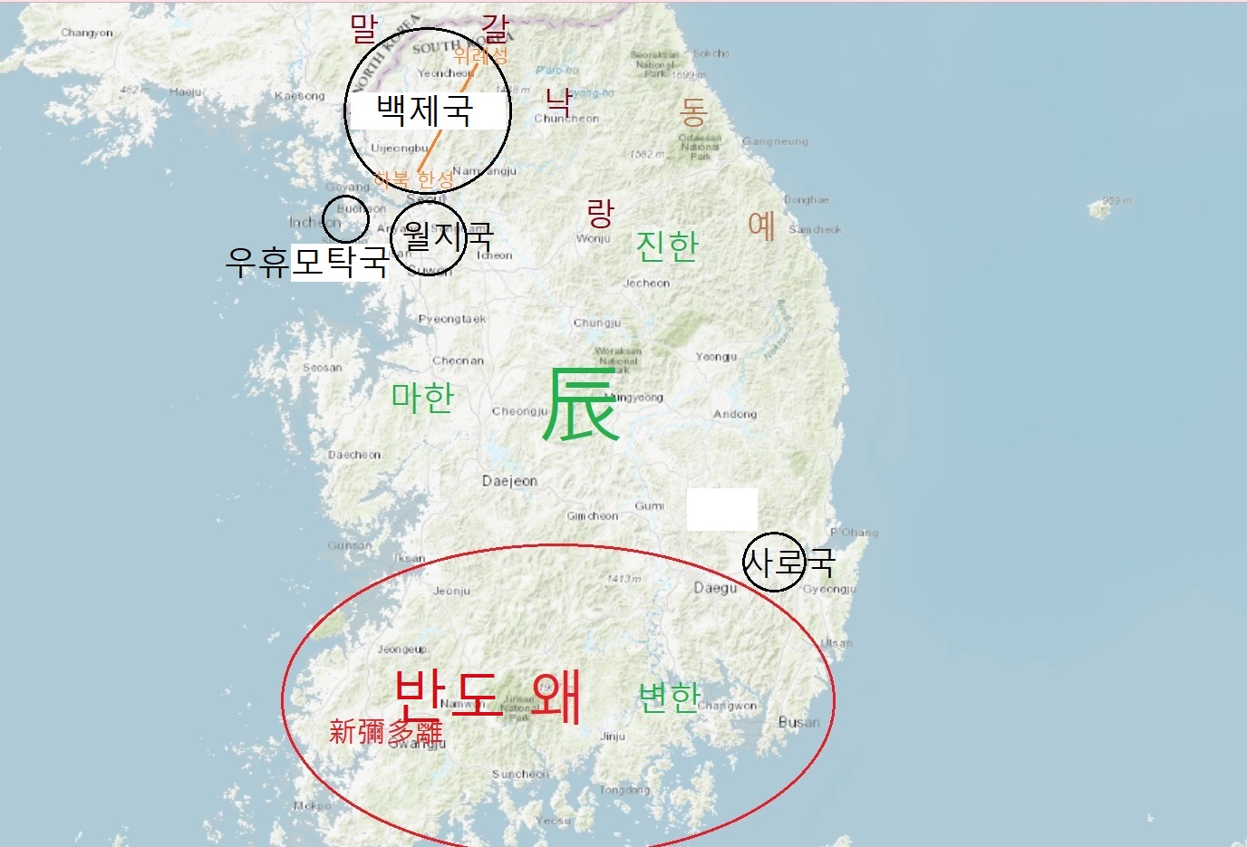 여기서 진한의 위치도 경북에서 강원도로 변경했습니다.